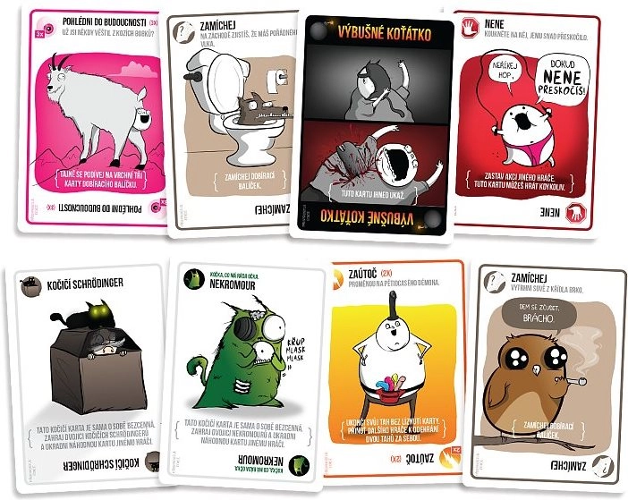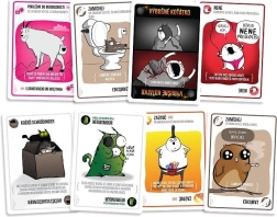 Eksplozivne mace: Bezobrazna edicija je odrasla varijanta svjetskog hita, najuspješnije igre na Kickstarteru. Igrači vuku karte i nastoje izbjeći kartu Eksplozivna mačka. Tko je okrene, a nema kartu Onemogući, eksplodira i ispada iz igre. Ostale karte pomažu preživjeti – ili pak postaviti zamku protivnicima.