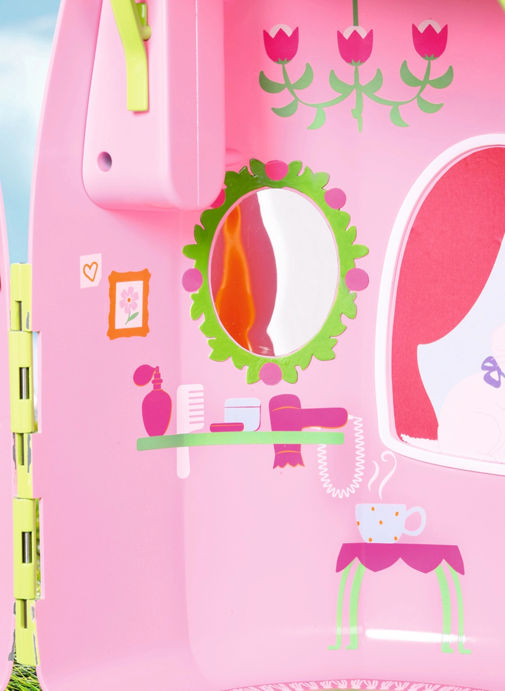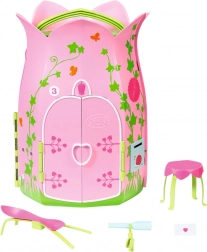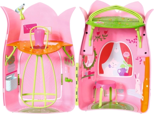 Otkrijte svijet mašte s Kućicom BABY born Pričice, gdje svaki kutak potiče nove priče. Otvaranjem kućice u obliku cvijeta otkriva se prekrasna unutrašnjost opremljena stolićem, kaminom i ljuljačkom ovješenom sa stropa igraonice. Na zidu se nalazi pretinac za odlaganje čarobnog štapića, tako da igra nikad ne prestaje.