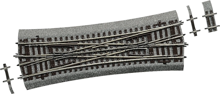 Precizna križna skretnica Roco Line DKW15 za H0 s vjernom reprodukcijom drvenih pragova i šljunčane podloge. Nudi kut 15°, radijus skretanja 1050 mm i potpunu polarizaciju za gladak i pouzdan prolaz. U paketu su umetci D12 i D4 za jednostavnu ugradnju te mogućnost ručnog i daljinskog upravljanja.