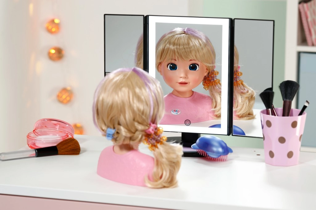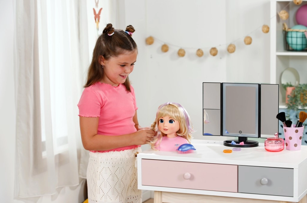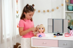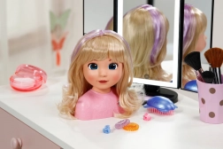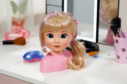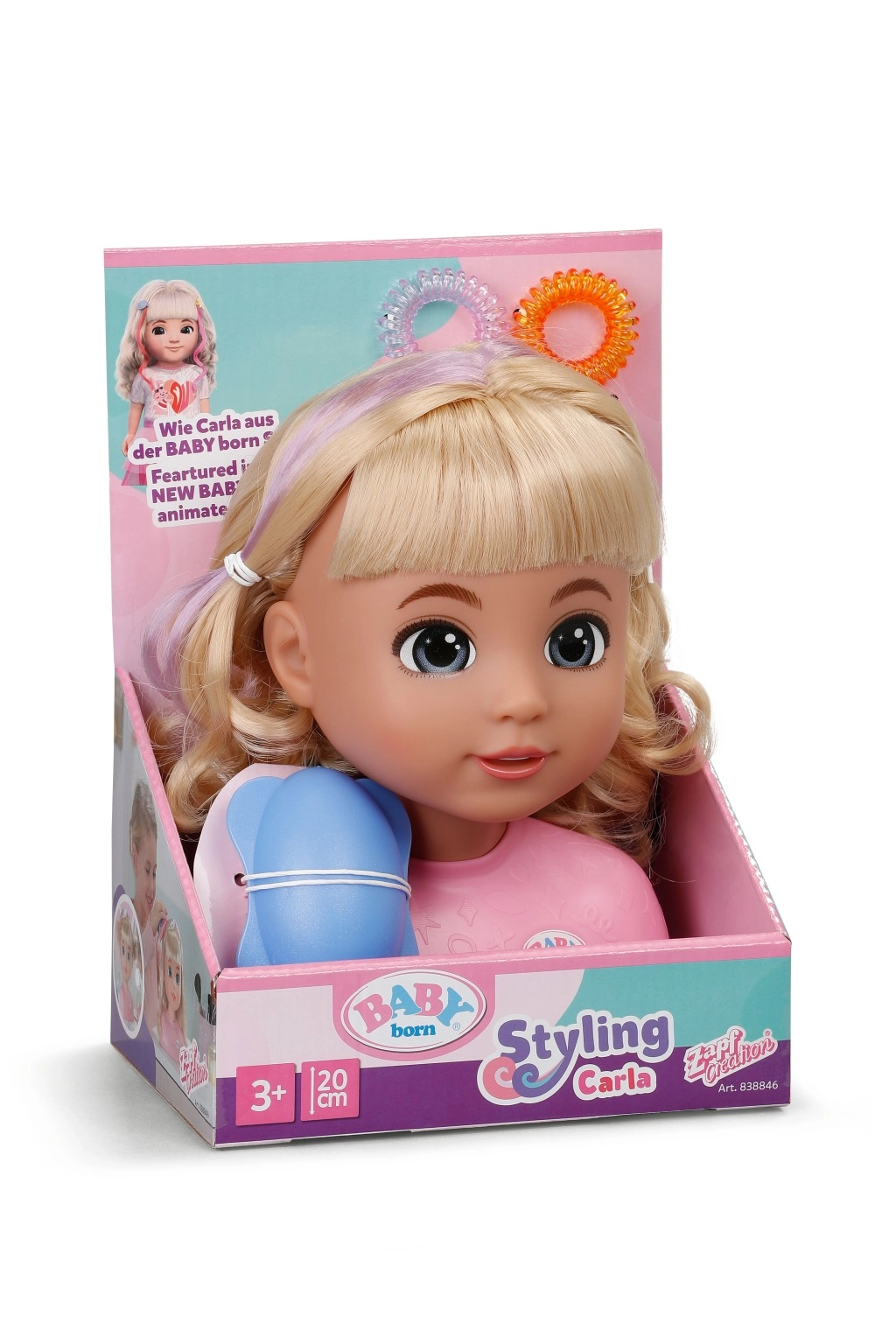 Glava za češljanje Baby Born Carla donosi djeci svijet kreativnosti i mašte. Duga, svilenkasta i izdržljiva najlonska kosa odlično drži frizure, lako se raščešljava i potiče stalno isprobavanje novih stilova – od jednostavnih repova do razrađenih pletenica.