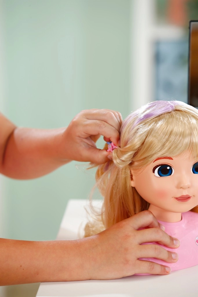Čvrsto postolje drži glavu na mjestu pri češljanju na stolu ili toaletnom stoliću – prikladno za djecu od 3 godine.