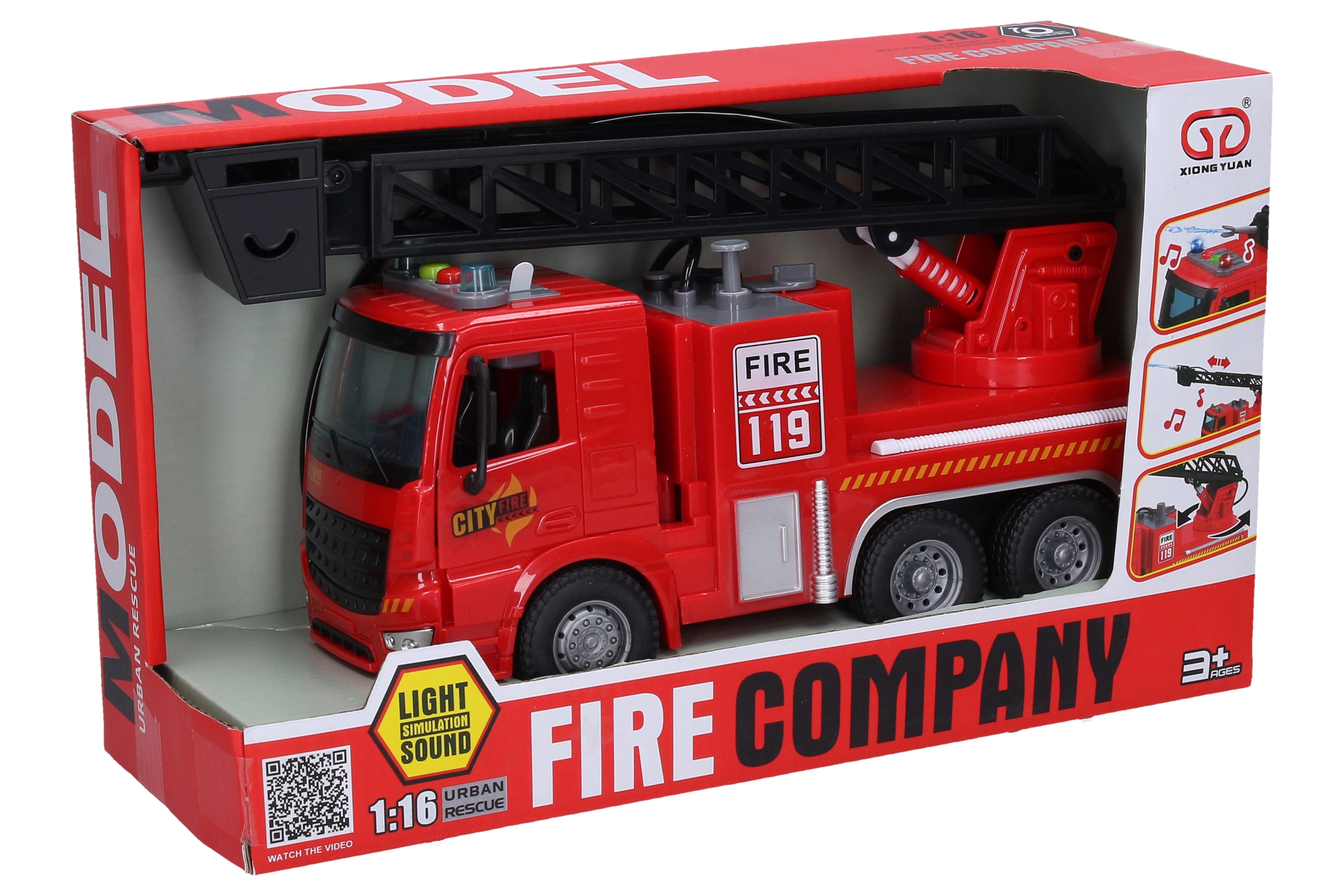 Uživajte u napetim spasilačkim misijama s vatrogasnim vozilom koje spaja realistične funkcije i jednostavno upravljanje. Zahvaljujući ugrađenom spremniku za vodu skrivenom unutar cisterne doista prska vodu – dovoljno je napuniti kroz čep na krovu i pritisnuti gumb na spremniku.