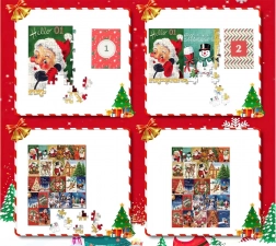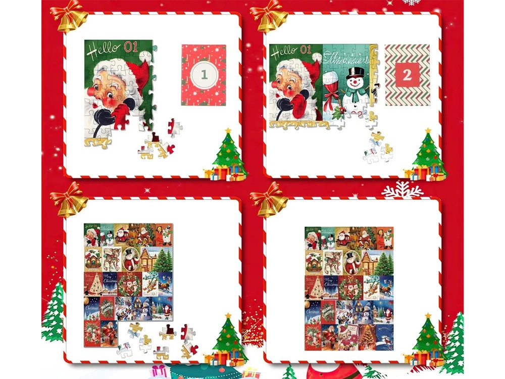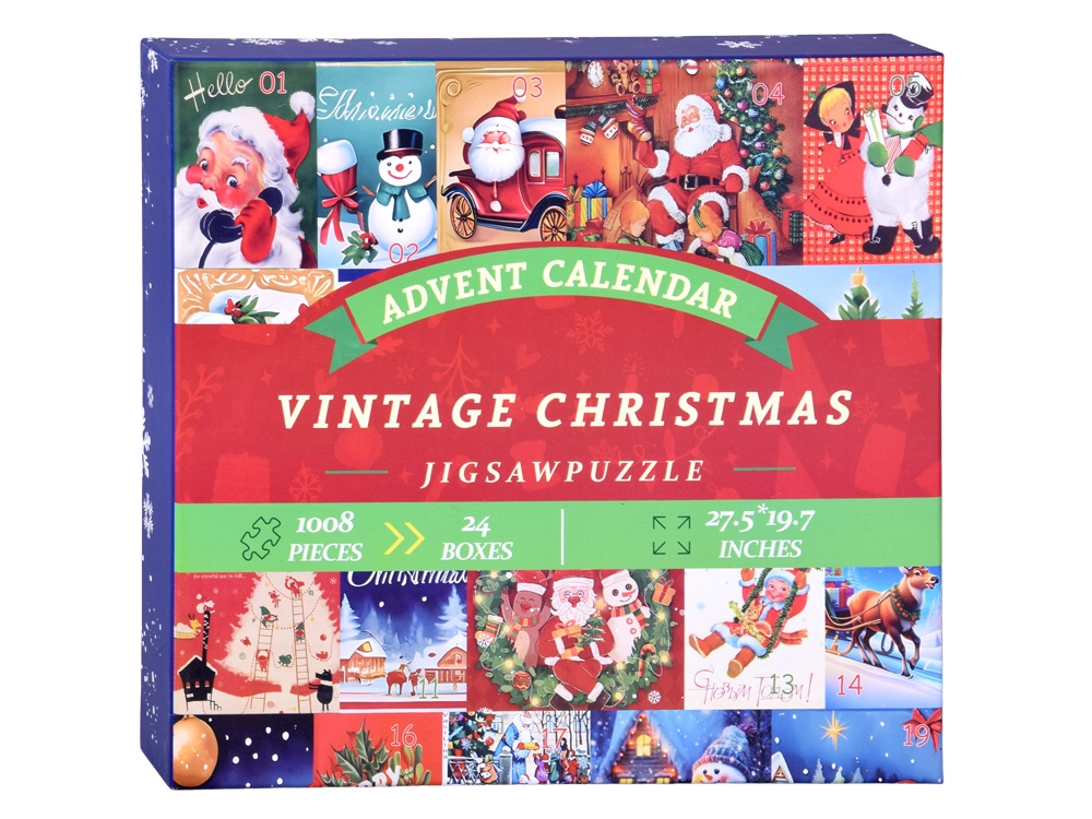 Ovaj adventski kalendar spaja radost odbrojavanja do Badnjaka s opuštajućom zabavom slaganja puzzli. Svaki dan otvorite jedno od 24 prozorčića i dobit ćete malu slagalicu s jedinstvenim vintage motivom. Nakon slaganja svih slagalica nastaje jedna zajednička slika dimenzija 70 × 50 cm, koja će lijepo upotpuniti blagdanski ugođaj.