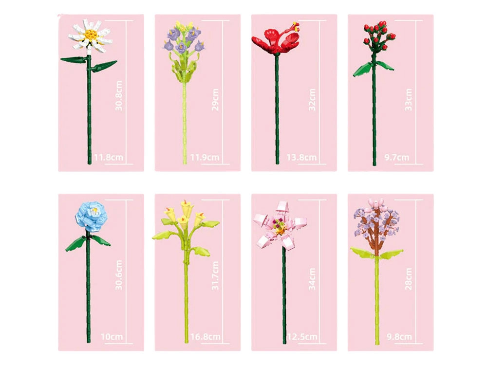 Ova dizajnerska građevna set-kolekcija spaja zabavu, kreativnost i elegantnu dekoraciju. Sastavit ćete raznolike cvjetove s podesivim stabljikama i laticama koje lako aranžirate u priloženu vazu. Gotov buket odlično izgleda na polici, komodi ili stoliću za kavu.