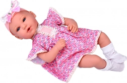 Preslatka interaktivna lutka beba visine 46 cm očarat će svojom realističnom nežnom facom, dugim trepavicama i mekanim trbuščićem. Ima zglobne udove za lako namještanje položaja, odjevena je u nježnu lila haljinicu s čipkom, a tu je i zvučni modul za još autentičniju igru. U pakiranju se nalaze i pastelni dodaci za raznoliku igru brige i maštanja.