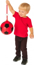 Crvena gumena lopta promjera 22 cm s nogometnim uzorkom odlična je za igru u kući i na otvorenom. Izrađena je od izdržljive, elastične gume koja se izvrsno odbija i podnosi svakodnevnu zabavu. Praktični držač za pričvršćivanje elastične vrpce olakšava prenošenje, trening spretnosti i igre bez otkotrljavanja lopte. Zahvaljujući laganoj konstrukciji i izražajnoj crvenoj boji lopta je dobro vidljiva i pogodna za djecu od 3 godine.