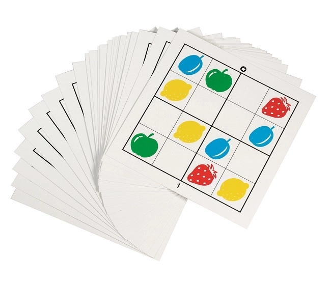 Ova pametna varijanta sudokua za najmlađe donosi jednostavna pravila i puno zabave. Djeca popunjavaju prazna polja u mreži 4×4 tako da se isti prikazi ne ponavljaju u redu, stupcu niti u kvadratima – baš kao u klasičnom sudokuu, samo s veselom voćnom grafikom.