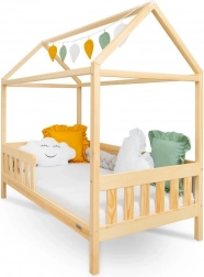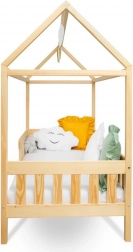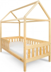 Krevet kućica New Baby Castello unosi u dječju sobu ugodnu atmosferu i potiče maštu i kreativnu igru. Otvoreni krov poziva na ukrašavanje lampicama ili tekstilnim baldahinom, dok čvrsta konstrukcija od bora i glatka završna obrada osiguravaju dugotrajnost i sigurno korištenje.