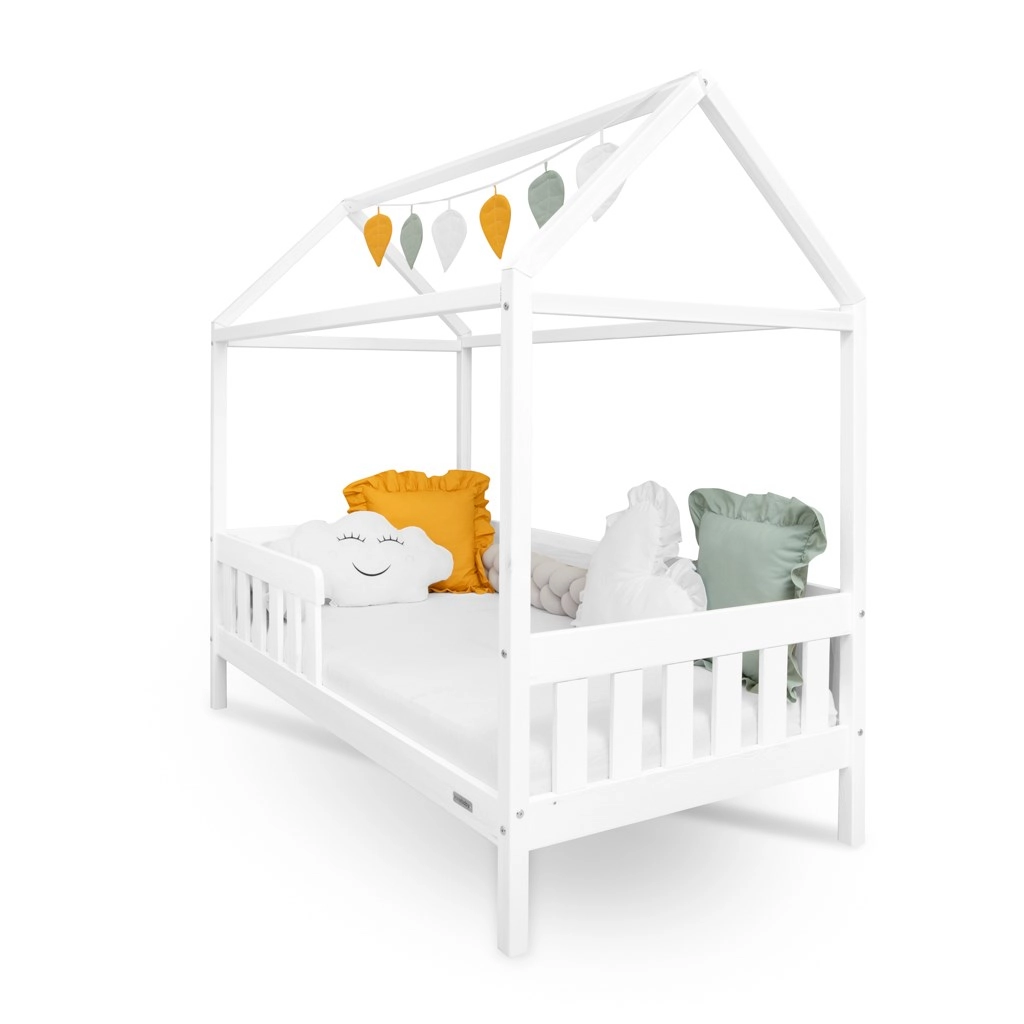 Stilski dječji krevet u obliku kućice NEW BABY Castello nudi sigurnost, udobnost i razigran dizajn za svakodnevno spavanje i igru. Masivno borovo drvo, vodene lak boje sigurne za djecu, zaštitna ograda protiv pada i kvalitetna lamelna podnica za zdravu potporu kralježnici čine ovaj krevet odličnim izborom za svaku dječju sobu.