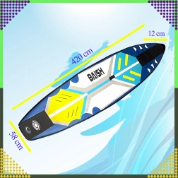 Otkrijte slobodu na vodi s napuhujućim paddleboardom dimenzija 420 × 58 × 12 cm koji nudi visoku stabilnost, lako manevriranje i udobnu protukliznu EVA površinu. Zahvaljujući izdržljivoj kompozitnoj konstrukciji s PVC-om ojačanim staklenim vlaknima, visokotlačnom ventilu i niskoj težini idealan je za duge vožnje i rekreativno veslanje. U paketu je praktičan pribor za udobnu upotrebu.
