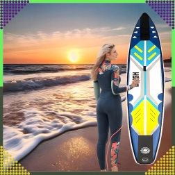 Ovaj univerzalni SUP dizajniran je za početnike i napredne vozače. Duga i uska silueta (420 × 58 × 12 cm) osigurava učinkovit kliz, stabilnost i brzinu na mirnoj vodi i duljim dionicama. Protuklizna EVA pjena s dijamantnom strukturom povećava sigurnost stava i udobnost čak i tijekom dugih vožnji.
