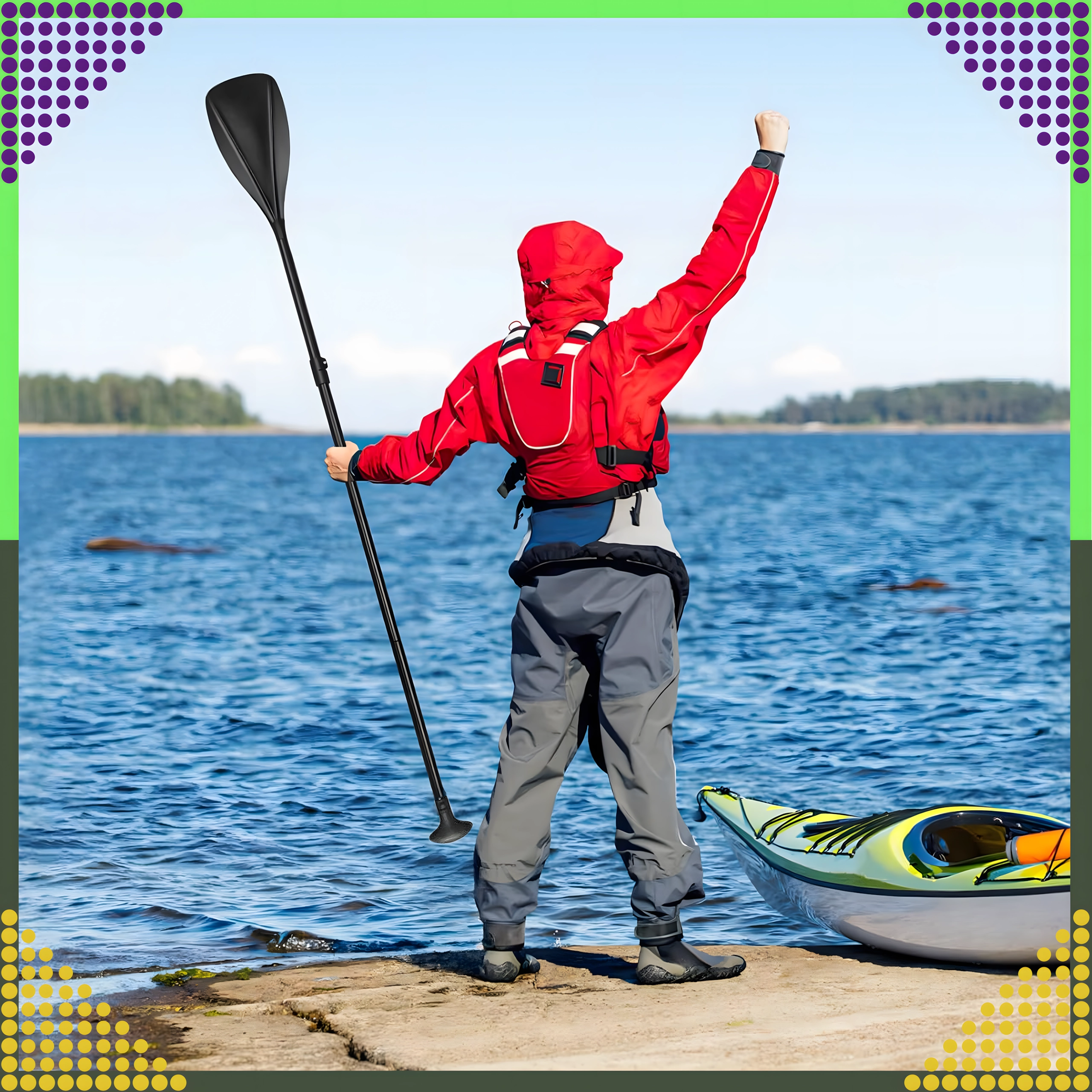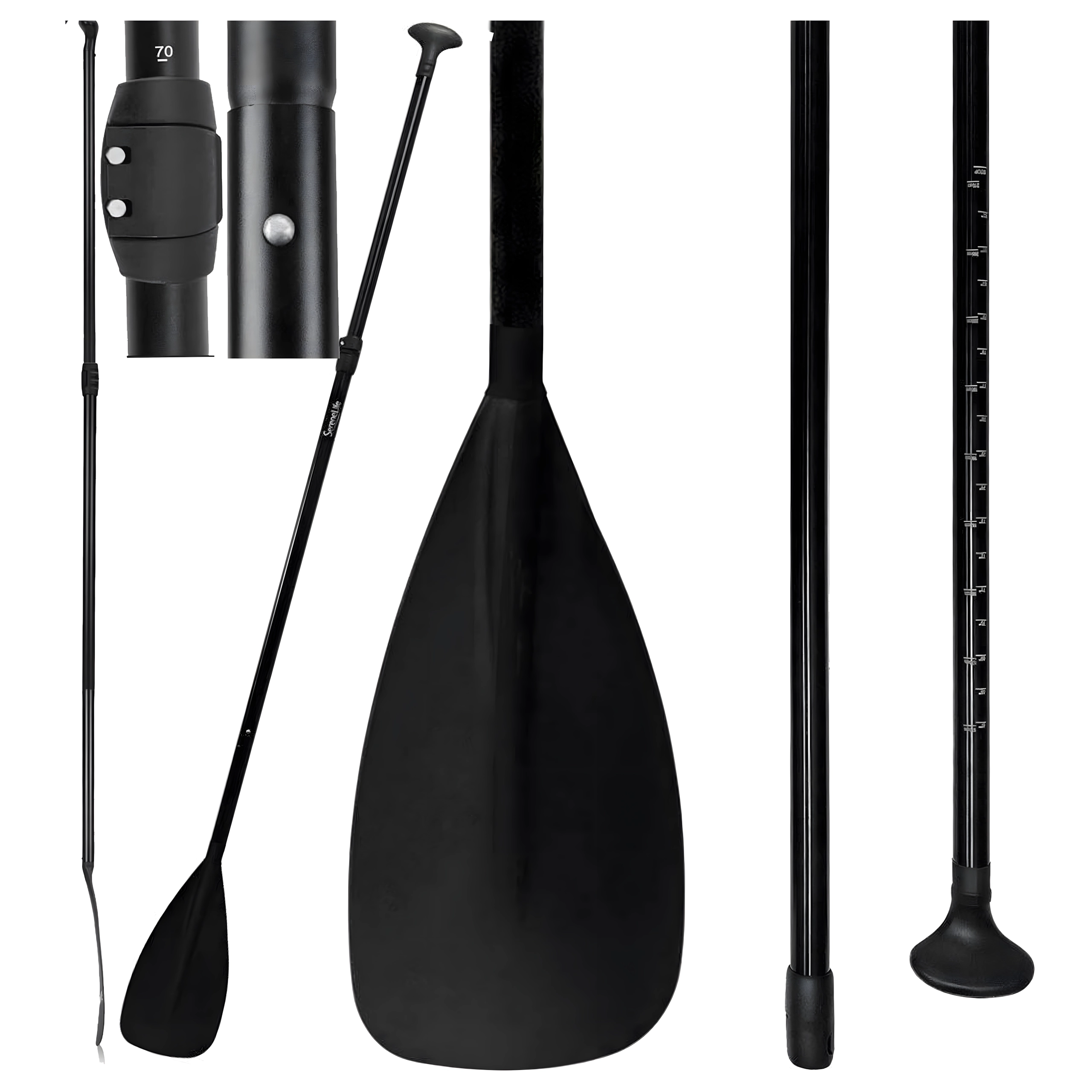 Univerzalno aluminijsko veslo za SUP i kajak s podesivom dužinom, sklopivom 3-dijelnom konstrukcijom i udobnom T-ručkom. Izdržljivi materijali, brzo podešavanje i lako prenošenje – idealno za početnike i napredne.