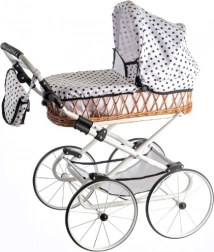 Pružite djeci čar klasičnog stila s retro kolicima Monika. Pletena košara od pruća u kombinaciji s bijelom konstrukcijom i razigranim točkastim uzorkom djeluje elegantno i bezvremenski. Kolica su lagana, stabilna i promišljeno dizajnirana za udobnu svakodnevnu igru.