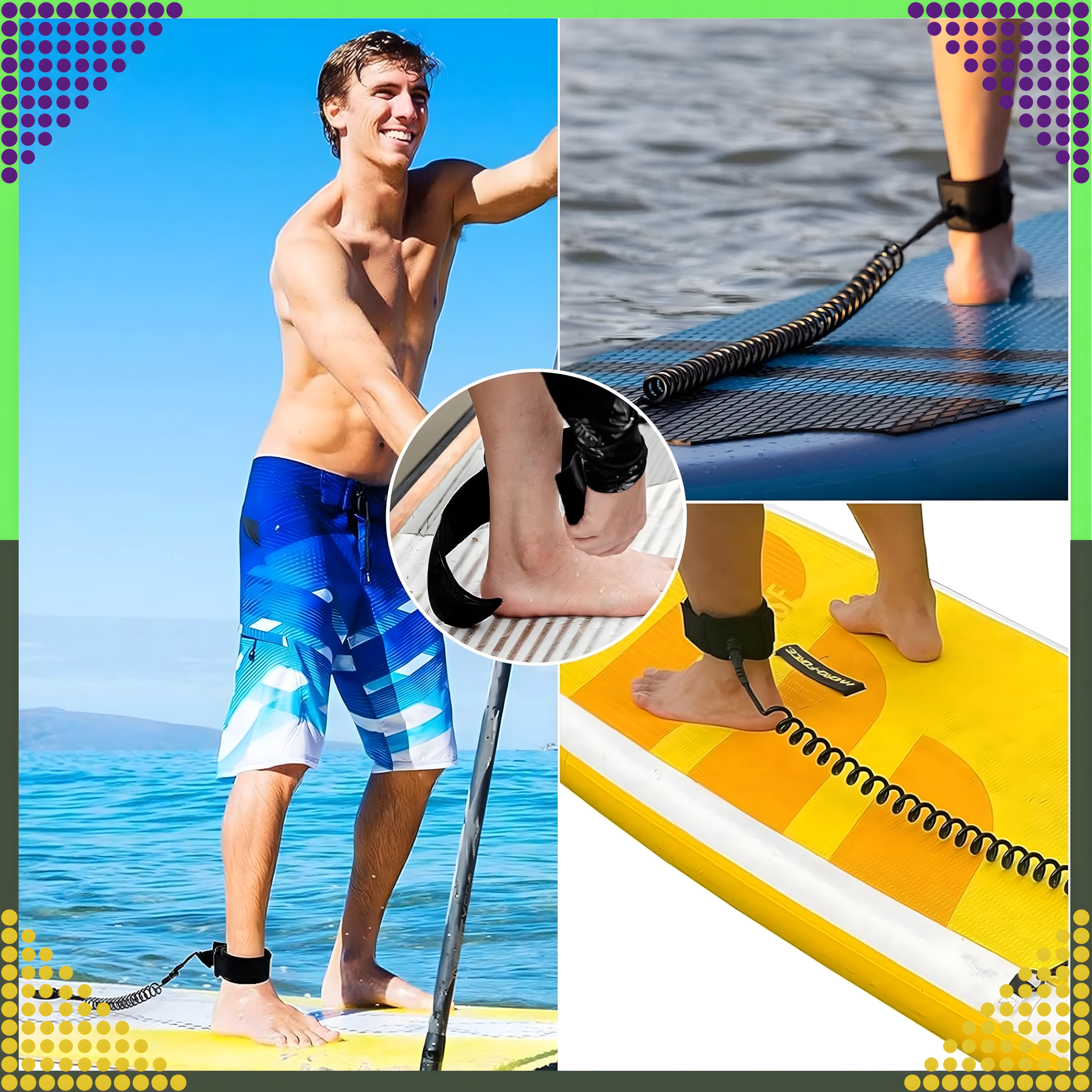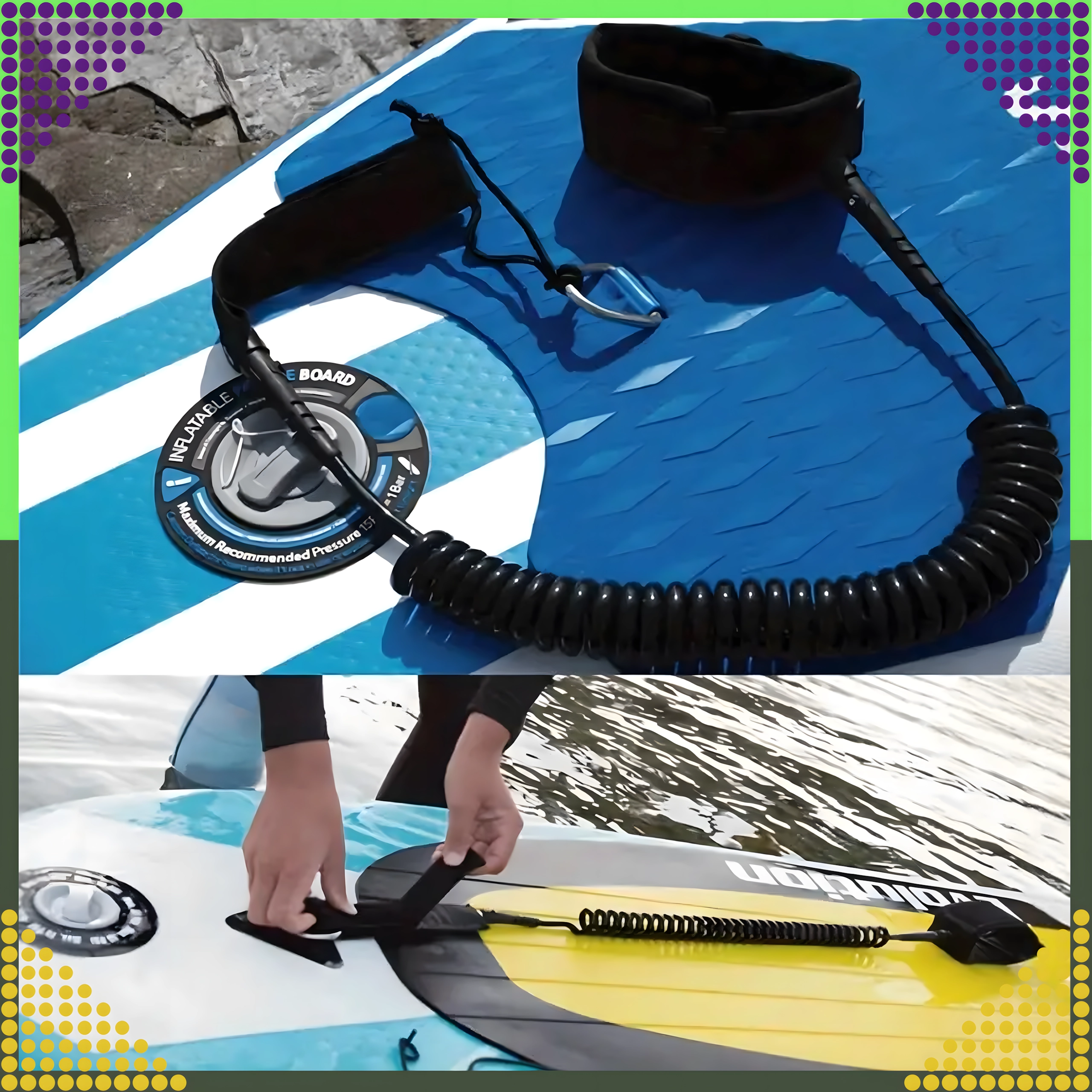 Spiralna SUP leash s udobnim gležanjskim remenom drži vašu dasku uvijek u blizini pri padu u vodu. Izrađena od izdržljivih materijala, s udobnim podstavljenjem i brzim čičak-zatvaranjem. Zahvaljujući duljini do 3,3 m pruža slobodu kretanja, a spiralna konstrukcija smanjuje vuču i zaplitanje.