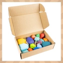 Drvene kockice u obliku kamenčića brenda Kruzzel podržavaju prirodan razvoj djeteta. Zahvaljujući višebojnoj izvedbi i različitim veličinama djeca vježbaju finu motoriku, koordinaciju oko–ruka i strpljenje. Izdržljivo drvo ugodno je na dodir i prikladno za svakodnevnu igru.