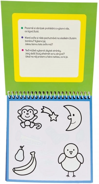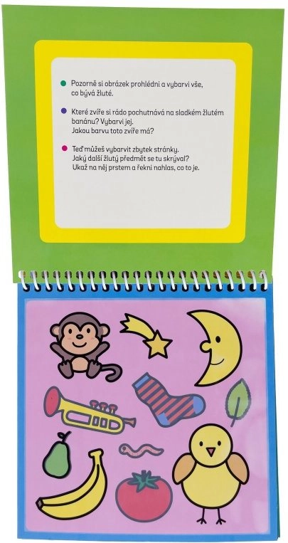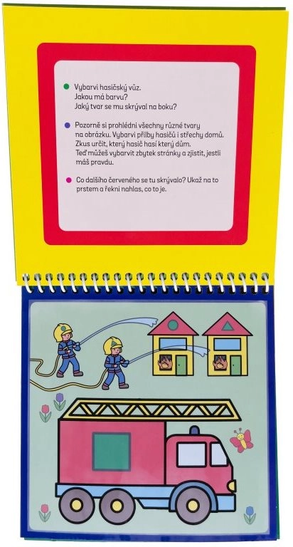 Otkrijte zabavnu knjižicu za djecu koja razvija prepoznavanje oblika i boja pomoću čarobnog bojanja vodom. Dovoljno je napuniti posebni flomaster vodom i slike će se pri bojanju odmah razvedriti. Nakon sušenja boje nestaju, pa možete bojati iznova i iznova – bez nereda i bez klasičnih boja.
