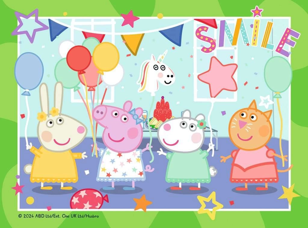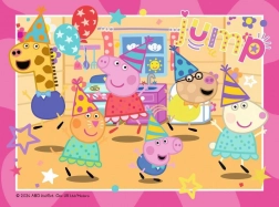 Ovaj set sadrži četiri zasebne slike s temom proslave iz crtića Pepa Pig. Zahvaljujući postupnom povećavanju broja dijelova, idealan je za razvoj strpljenja, fine motorike i logičkog razmišljanja. S većim brojem dijelova smanjuje se veličina dijelova, što potiče preciznost i koncentraciju.