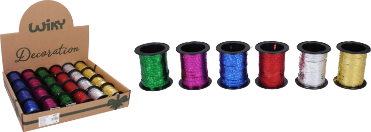 Vrpca je dostupna u šest omiljenih boja: plava, ljubičasta, zelena, crvena, srebrna i zlatna. Zahvaljujući duljini od 10 m dovoljna je za više projekata i dekoracija.