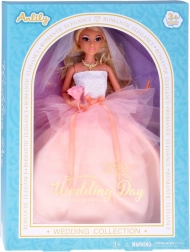 Elegantna svadbena lutka ANLILY iz kolekcije Wedding Day očarat će djecu prekrasnim detaljima i poticanjem mašte. Ima dugu plavu kosu za češljanje, artikulirane ruke i noge te nosi čipkasti korzet s višeslojnim til suknjom u ružičasto-breskvastoj nijansi. Stil upotpunjuju bijeli veo, zlatna ogrlica i svadbeni buket – idealno za bajkovite svadbene igre.