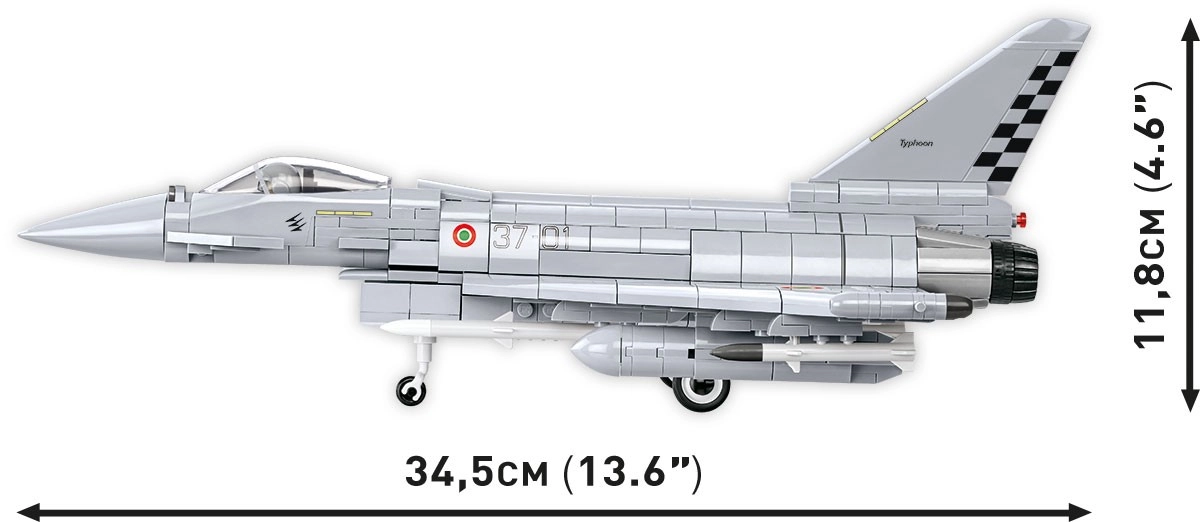 Detaljan model modernog lovca EUROFIGHTER u bojama Talijanskog ratnog zrakoplovstva oduševit će ljubitelje zrakoplovstva, vojne tehnike i konstrukcijskih setova. Precizna izrada u mjerilu 1:48 ističe aerodinamične oblike, naoružanje pod krilima i kabinu s prozirnim pokrovom. Stabilno izložbeno postolje s otisnutim nazivom dat će vašoj vitrini profesionalan izgled.