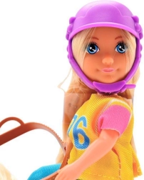 - lutka jahačica, zaštitna kaciga, figura konja sa svijetlom grivom i repom, sedlo i uzda
