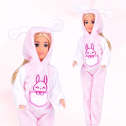 - ružičasti zečji overali s kapuljačom i uškama, mekani/plišani na dodir