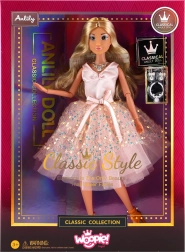 Elegantna lutka Lily brenda Woopie razveselit će svaku malu princezu. Visoka je 30 cm, ima dugu plavu kosu za češljanje i ružičastu balsku haljinu s blagim sjajem. U kompletu su stilizirani dodaci – ogrlica, naušnice i elegantne cipelice. Prikladno za djecu od 3 godine.