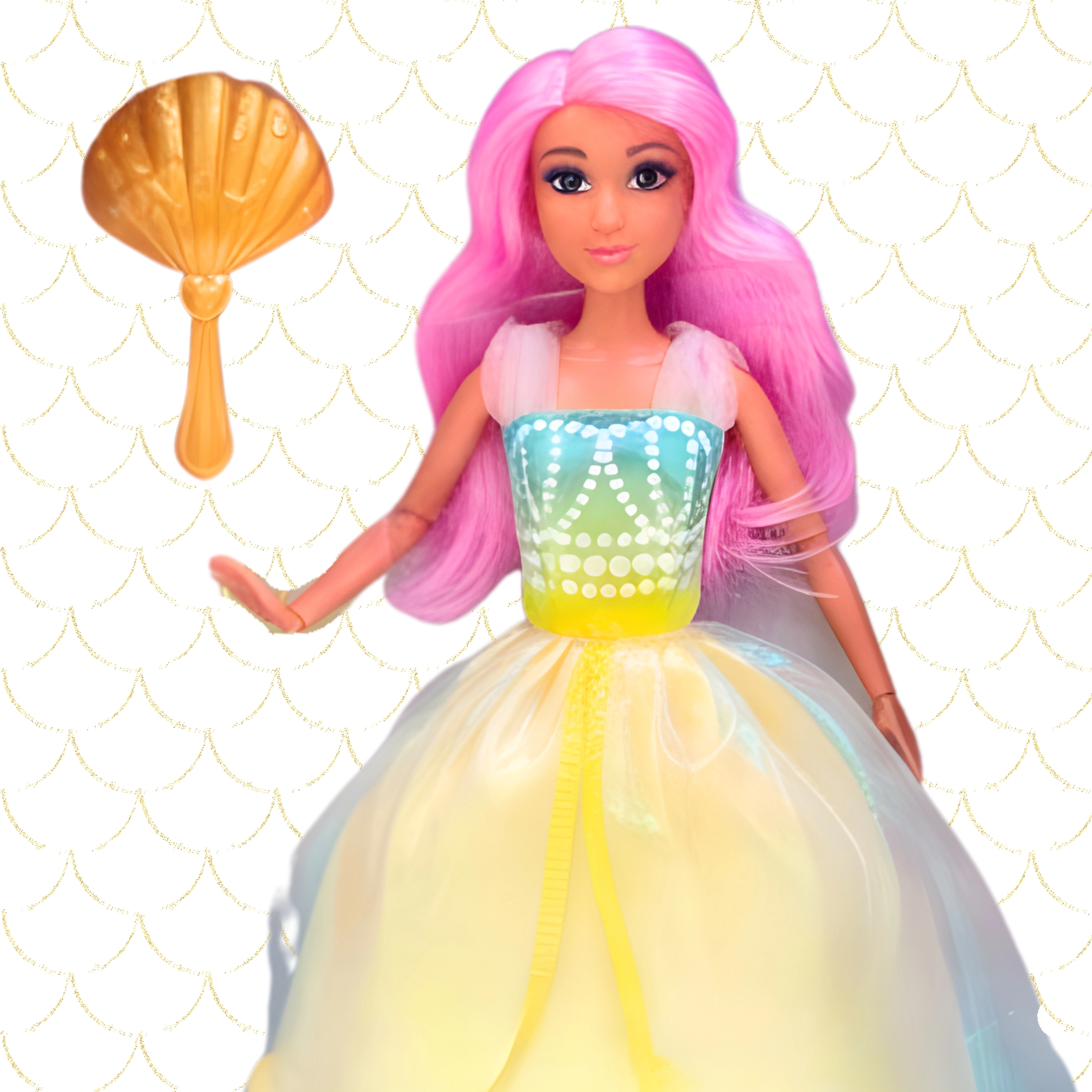 Otkrijte čarobnu lutku Woopie Lili – princezu iz bajkovitog oceana s dugom ružičastom kosom za češljanje i izradu frizura. Odjevena je u svjetlucavu pastelnim haljinu, a u pakiranju ćete pronaći zlatni češljić u obliku školjke i elegantan prsten. Idealan dar za djecu od 3 godine, koji razvija kreativnost i maštu.