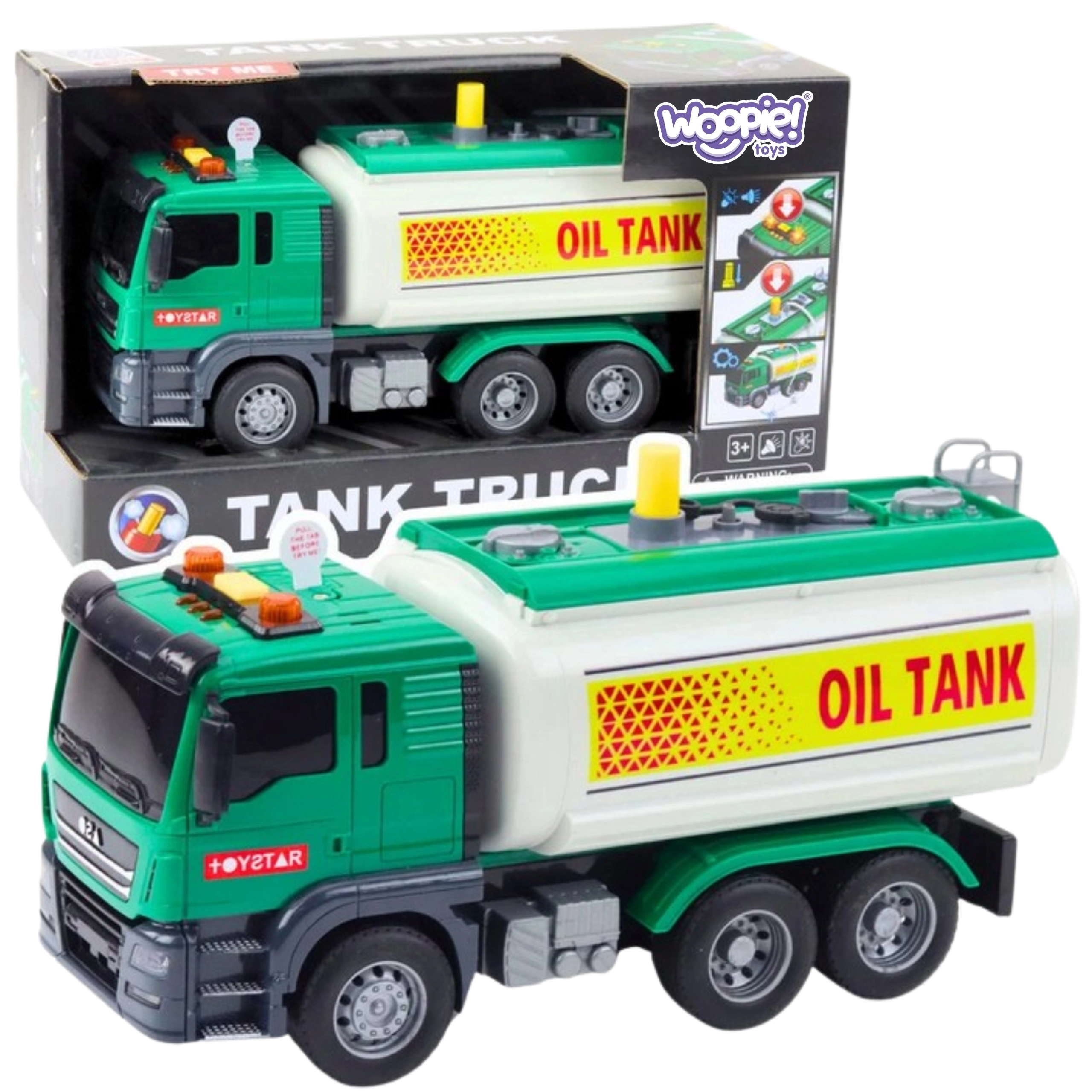 Interaktivna cisterna za vodu marke Woopie oduševit će svakog malog vozača. Nudi realno pumpanje vode pomoću spremnika, pumpe i fleksibilnog crijeva, svjetlosne i zvučne efekte te čvrstu konstrukciju od kvalitetne plastike. Sjajna igračka za djecu od 3 godine koja potiče maštu, koordinaciju i igru uloga.