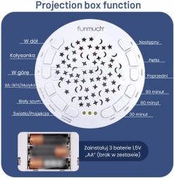 Ugrađeni projektor prikazuje zvijezde i mjesečiće koji stvaraju umirujuću atmosferu i potiču razvoj vida djeteta.
