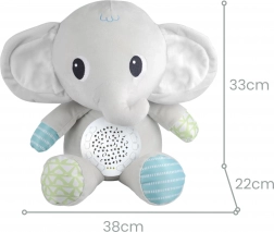 Preslatki plišani slon WOOPIE spaja projektor zvijezda i mjesečića s glazbenom kutijom/umirivačem te nudi 12 umirujućih melodija, uključujući uspavanke i bijeli šum. Zahvaljujući timeru 30/60/90 min, regulaciji glasnoće i mekom, sigurnom plišu idealan je pratitelj za novorođenčad i dojenčad pri uspavljivanju.