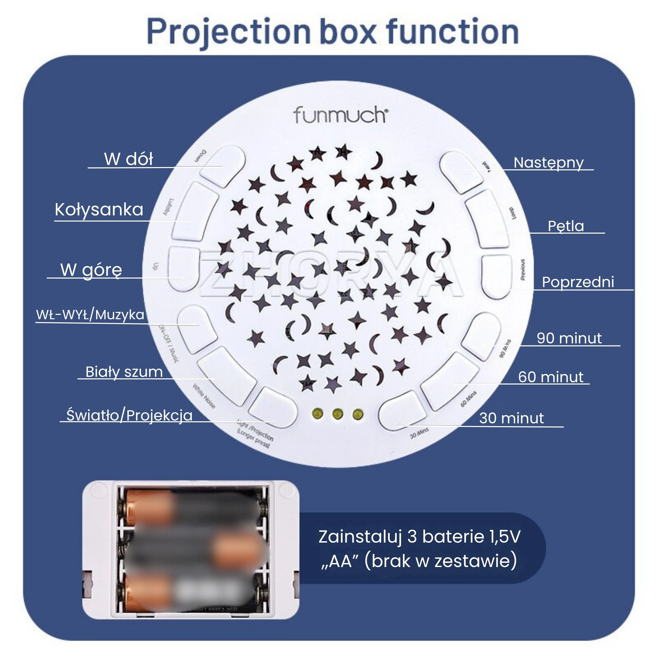 - Svjetlosni projektor – nježna projekcija zvijezda i mjesečića za vizualno smirenje