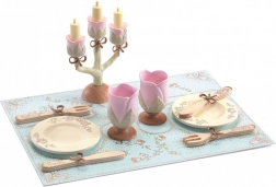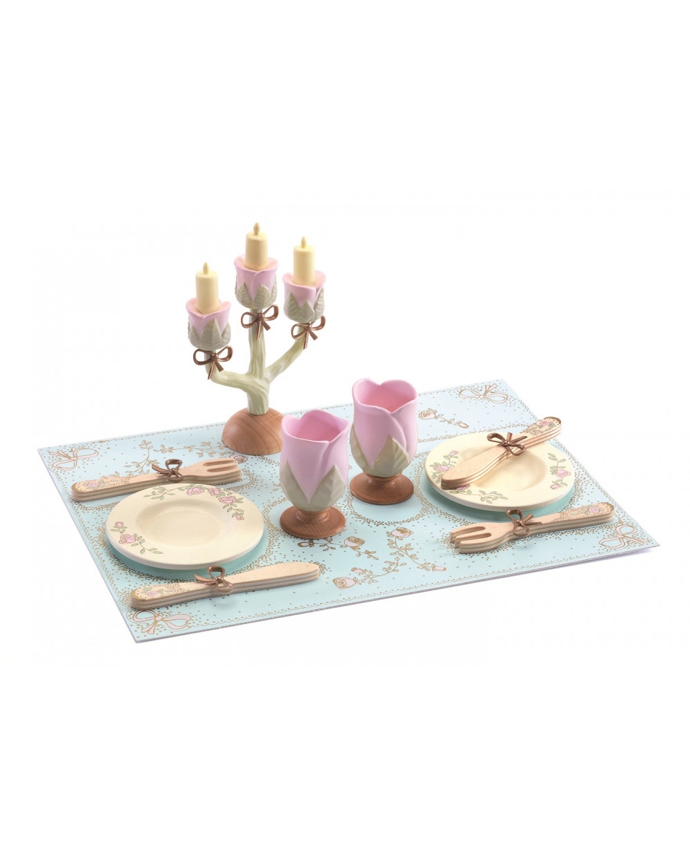 Ovaj oslikani drveni set DJECO pretvara svaku dječju kuhinjicu u kraljevsku blagovaonicu. Djeca mogu uvježbavati postavljanje stola, pristojnost i međusobnu suradnju, a istovremeno razvijati finu motoriku i maštu. Nježni princesinski motivi i pomna izrada čine ovaj set prekrasnim darom.