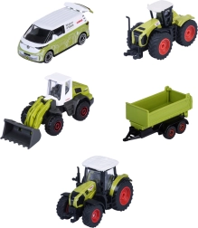 Otkrijte realističan set za male farmere: Majorette Claas Farm donosi 5 detaljno izrađenih vozila s licencom CLAAS, uključujući traktore, utovarivač, prikolicu i VW dostavno vozilo. Modeli od metalnih i plastičnih dijelova imaju pokretne dijelove i slobodno okrećuće kotače – idealno za igru i kolekciju.