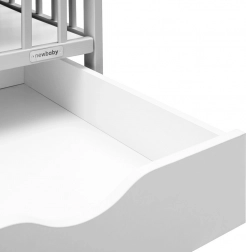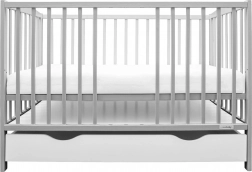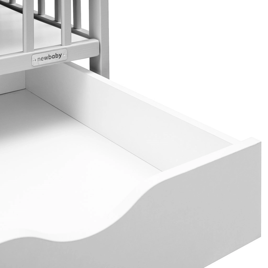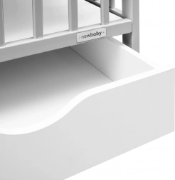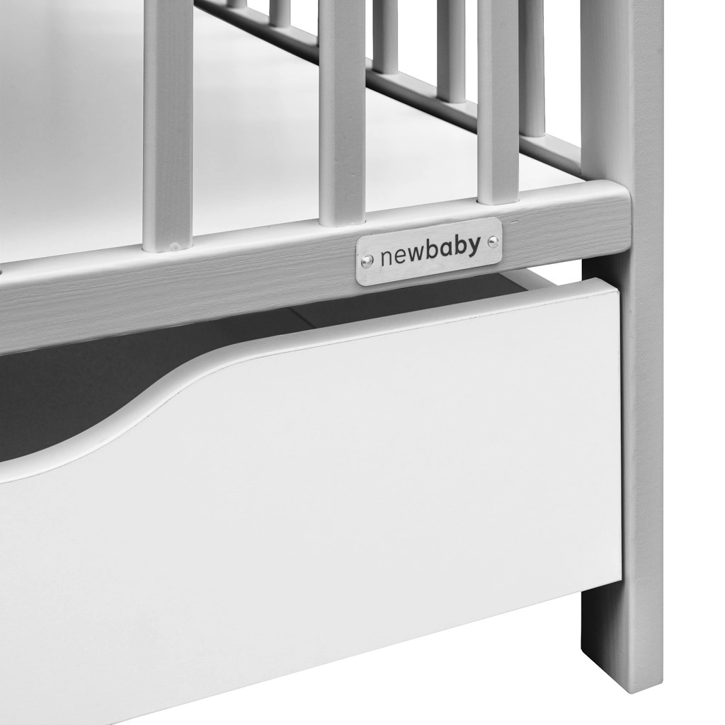 Elegantni dječji krevetić NEW BABY Lilly u sivoj boji spaja sigurnost, praktičan prostor za pohranu i moderan dizajn. Izrađen je od kvalitetnog borovog drva s FSC certifikatom i ima vodenu lak boju koja je nježna prema djeci i prirodi. Nudi 3 položaja podnice, izvadive prečke za samostalan prolaz djeteta i prostranu ladicu na vodilicama za pregledno odlaganje potrepština.