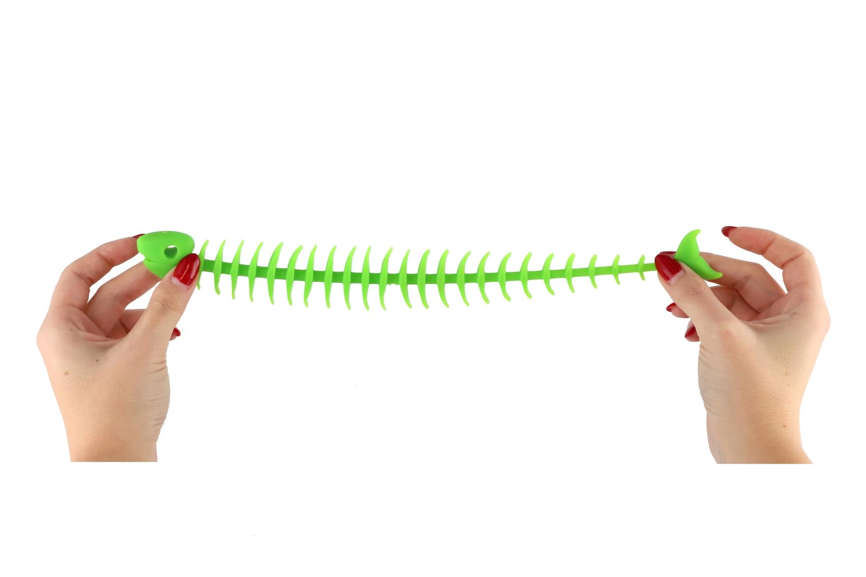 Ova razigrana rastezljiva riblja kost idealno je antistres pomagalo za školu, ured i dom. Silikonski materijal je mekan, savitljiv i izdržljiv, pa je možete iznova i iznova stiskati, uvijati i rastezati bez straha od oštećenja. Vesele boje dodatno potiču razigranost i privlače pozornost.