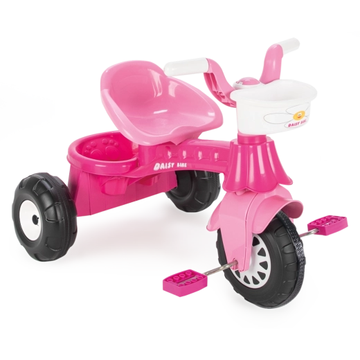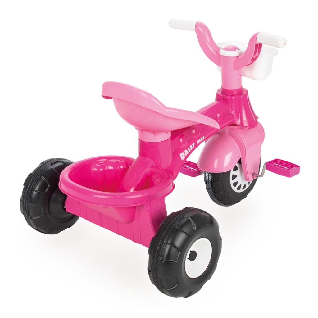 Preslatka dječja trokolica u ružičastoj boji s motivom tratinčice DAISY razveselit će male bicikliste već od otprilike 3 godine. Laka i čvrsta konstrukcija, robustni plastični kotači za stabilnu vožnju i dve košarice za igračke čine je idealnim izborom za prve vožnje. Nosivost do 35 kg.