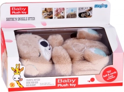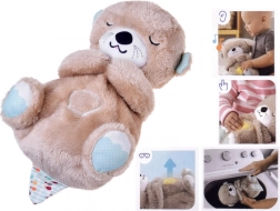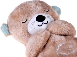 Umirite svoju bebu mekom vidrom koja nježno „diše“, svijetli na trbuščiću i reproducira melodije, otkucaje srca i bijeli šum. Ova interaktivna plišana igračka stvara osjećaj sigurnosti i pomaže djeci brže zaspati zahvaljujući ritmičnom pokretu trbuščića, prigušenom svjetlu i do 8 umirujućih zvukova. Mehanizam se lako vadi, a pliš se može prati u perilici rublja.