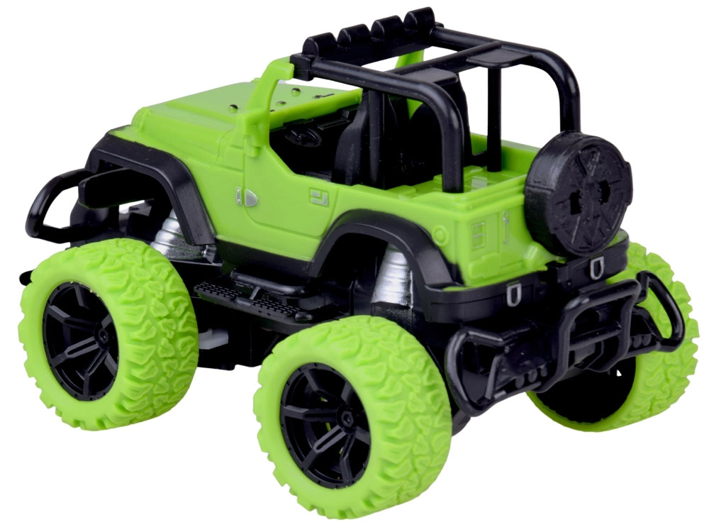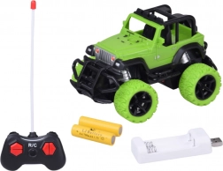 Uživajte u akcijskoj vožnji kod kuće i na otvorenom s izdržljivim RC terenskim vozilom u jarko zelenoj boji s crnim detaljima. Velika terenska gumena kola osiguravaju pouzdan grip na raznim podlogama, dok podešavanje zbiega/zakreta prednjih kotača pomaže dotjerati ravnu vožnju i precizne manevre. Dvije crvene LED diode na podvozju daju vožnji efektan izgled.