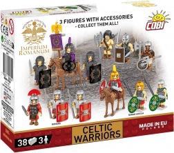 Uđite u svijet drevnih bitaka s setom COBI Imperium Romanum – Keltski ratnici. Kompaktno pakiranje s 38 dijelova sadrži 3 detaljno otisnute minifigurice s pokretnim udovima, bez naljepnica i s bogatom opremom – štitovi s novim otiscima, koplja i mač. Idealno za diorame, proširenje povijesnih scena, za igru i izlaganje.