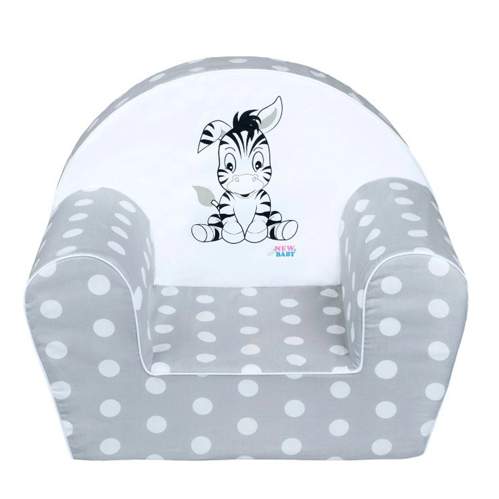 Preslatka dječja fotelja NEW BABY Zebra u sivoj boji s točkicama idealna je za prvo sjedenje vašeg djeteta. Izrađena je od lagane poliuretanske pjene i ima odvojivu pamučnu navlaku koja se lako pere. Pruža udobno i sigurno sjedenje, laka je za prenošenje i savršeno se uklapa u svaku dječju sobu.
