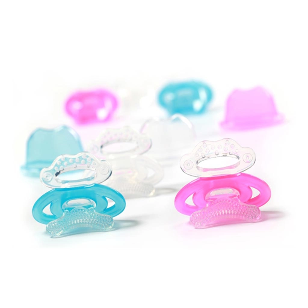 Za još veće olakšanje grickalicu je moguće hladiti u hladnjaku. Posebna konstrukcija omogućuje nanošenje umirujućeg gela na desni, koji se zahvaljujući strukturi ravnomjerno raspoređuje. Materijal je bez BPA i lako se održava čistim.