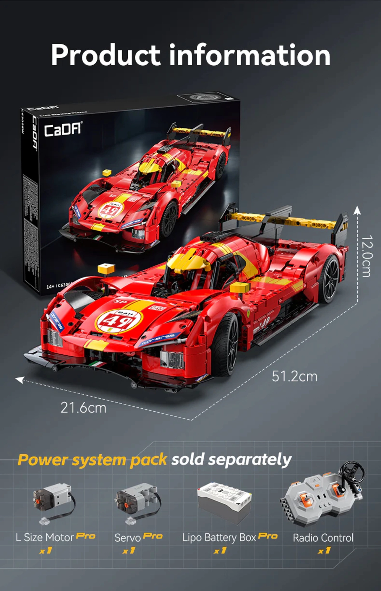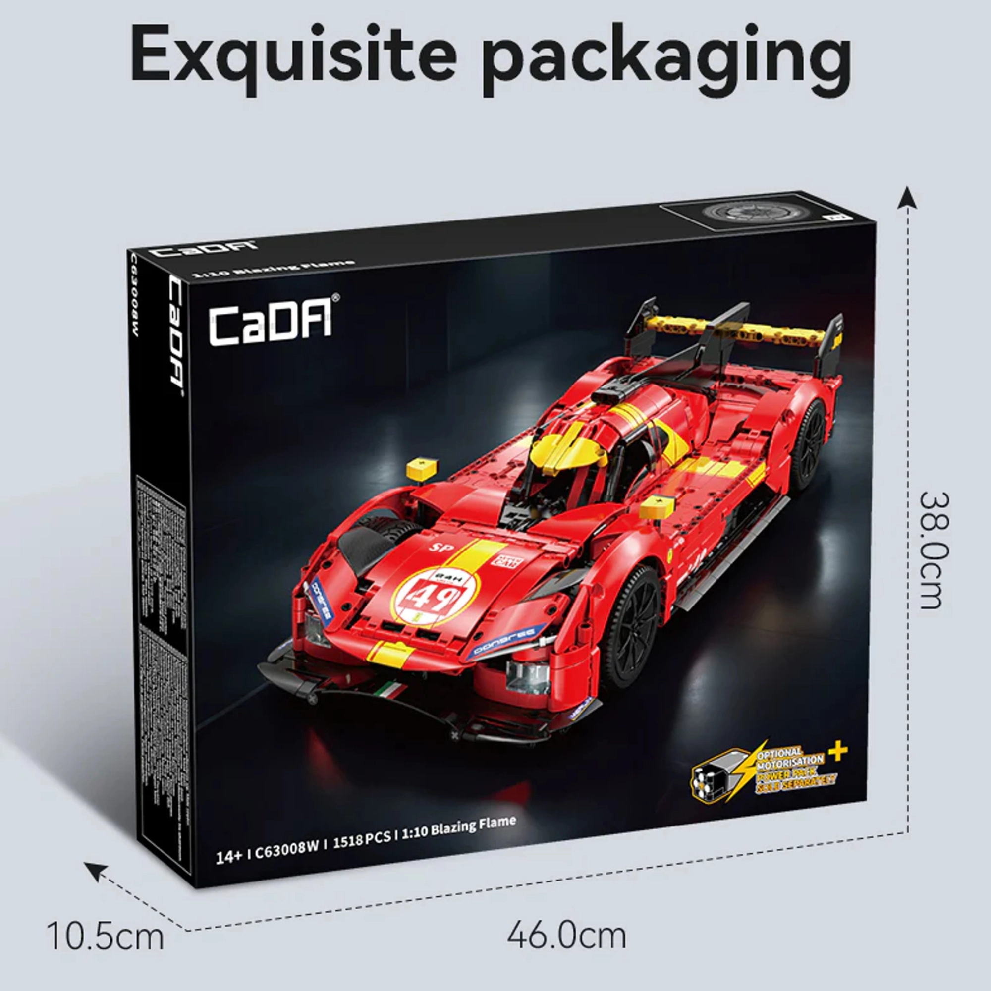 CaDA Blazing Flame je precizan tehnički set za sve zaljubljenike u brze automobile i promišljene mehanizme. Izgradite realističan trkaći specijal s aerodinamičnim dizajnom, razrađenom karoserijom i bogatim detaljima. Zahvaljujući jasnim uputama korak po korak, u modelu će uživati i napredniji mladi graditelji pod nadzorom odraslih.