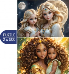 Opustite se uz elegantni set dviju slagalica od 500 dijelova s motivom majke i kćeri inspiriranim simbolom mjeseca i sunca. Idealno za ljubitelje umjetničkih ilustracija, kvalitetne izrade i ugodnih trenutaka kod kuće.
