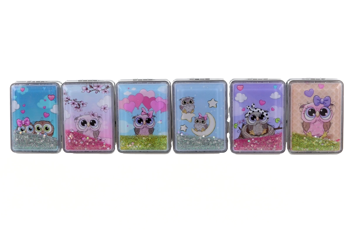 Stilsko džepno ogledalce s motivom veselih sovića oduševit će svojom razigranošću i praktičnošću. S prednje strane ima presipajuće šljokice, a nakon otvaranja pronaći ćete ogledalo s obje strane. Kompaktne dimenzije 5,5 × 8 × 1,5 cm stanu u svaku torbicu ili ruksak. Isporučujemo u različitim motivima prema trenutačnoj dostupnosti na skladištu.