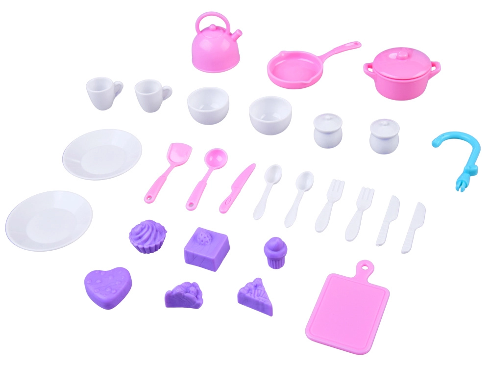 • Velik set dodataka – odjeća, cipele, posuđe, kozmetički i frizerski dodaci, laptop i figurica psića.