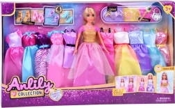 Ovaj očaravajući set za male ljubiteljice mode donosi sve što je potrebno za kreativno presvlačenje. Lutka ANLILY s dugom kosom i detaljnim make-upom može se odjenuti u 11 različitih haljina – sjajnih, s tilom, uzorčanih i glatkih, kratkih i dugih. Bogat set dodataka (krune, ogrlice, torbica, žezlo i šarene salonke) daje svakoj stilizaciji jedinstveni šarm.