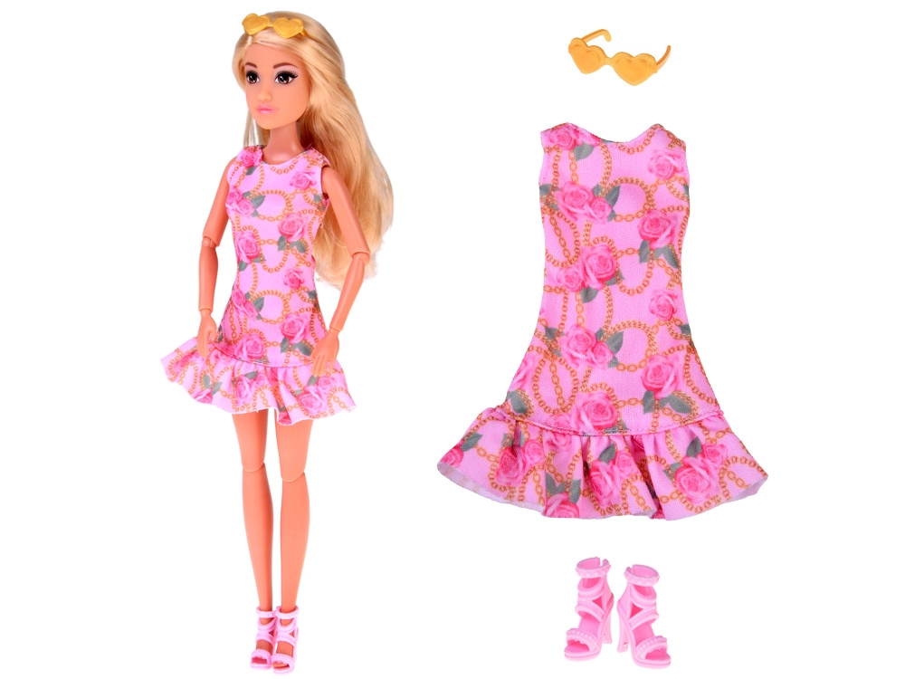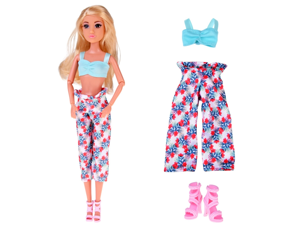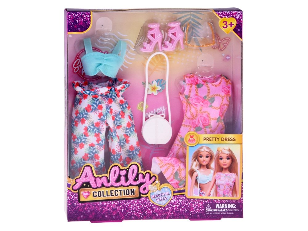 Osvježite modnu igru živopisnim setom odjeće za lutku koji donosi dvije ljetne kombinacije i modne dodatke. U setu su cvjetna haljina, tirkizni crop top s cvjetnim hlačama, uz to ružične salonke, sunčane naočale u obliku srca i još sitnica za mix & match styling i kreativnu modnu igru.