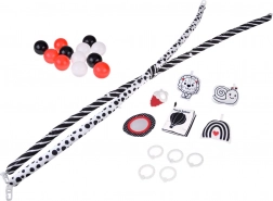 Crno‑bijeli uzorci s crvenim akcentima potiču fokus, praćenje pokreta i prirodnu pažnju novorođenčadi već od prvih dana.