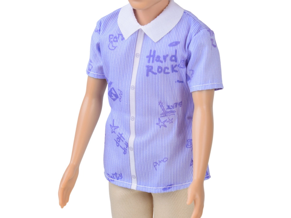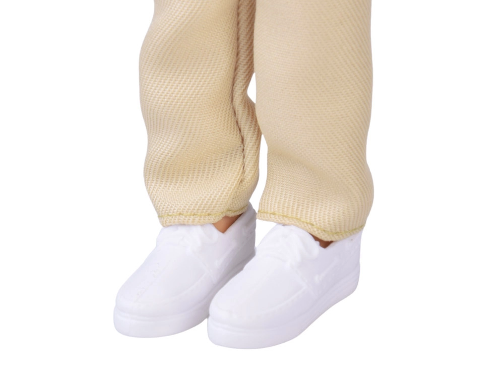 Elegantna košulja s ovratnikom, svijetle hlače i bijele cipele daju lutki moderan izgled. Odjeću je moguće skinuti i kombinirati.